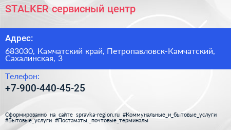 STALKER, сервисный центр по адресу 683030, Камчатский край, Петропавловск-Камчатский, Сахалинская, 3 в дальнейшем Организация, размещена в следующих категориях: