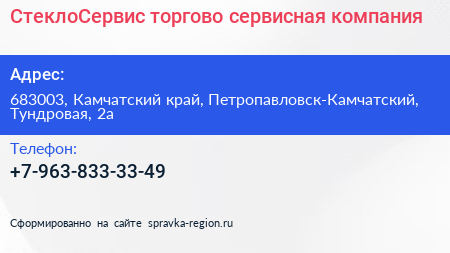 СтеклоСервис, торгово-сервисная компания по адресу 683003, Камчатский край, Петропавловск-Камчатский, Тундровая, 2а в дальнейшем Организация, размещена в следующих категориях: