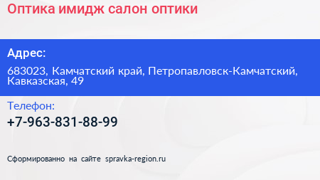 Оптика имидж, салон оптики по адресу 683023, Камчатский край, Петропавловск-Камчатский, Кавказская, 49 в дальнейшем Организация, размещена в следующих категориях: