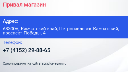 Привал, магазин по адресу 683006, Камчатский край, Петропавловск-Камчатский, проспект Победы, 4 в дальнейшем Организация, размещена в следующих категориях: