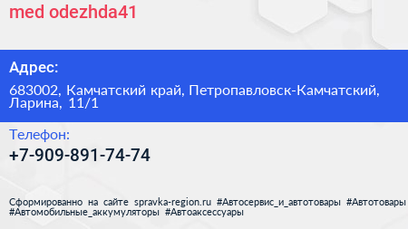 med.odezhda41 по адресу 683002, Камчатский край, Петропавловск-Камчатский, Ларина, 11/1 в дальнейшем Организация, размещена в следующих категориях: