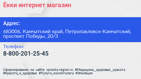 Ёкки, интернет-магазин по адресу 683006, Камчатский край, Петропавловск-Камчатский, проспект Победы, 20/3 в дальнейшем Организация, размещена в следующих категориях: