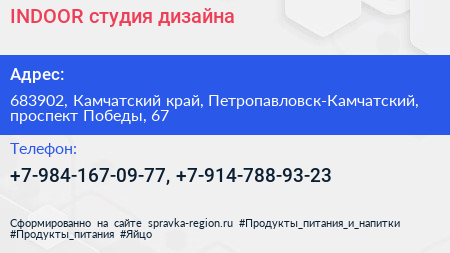 INDOOR, студия дизайна по адресу 683902, Камчатский край, Петропавловск-Камчатский, проспект Победы, 67 в дальнейшем Организация, размещена в следующих категориях:
