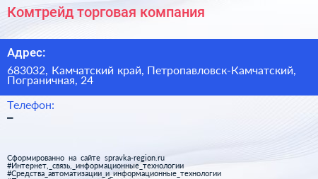 Комтрейд, торговая компания по адресу 683032, Камчатский край, Петропавловск-Камчатский, Пограничная, 24 в дальнейшем Организация, размещена в следующих категориях:
