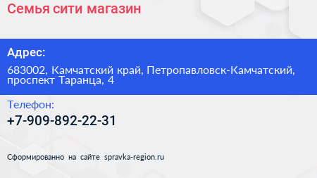 Семья сити, магазин по адресу 683002, Камчатский край, Петропавловск-Камчатский, проспект Таранца, 4 в дальнейшем Организация, размещена в следующих категориях: