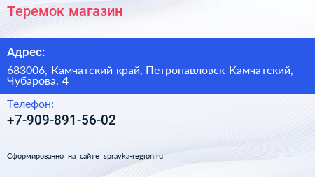 Теремок, магазин по адресу 683006, Камчатский край, Петропавловск-Камчатский, Чубарова, 4 в дальнейшем Организация, размещена в следующих категориях: