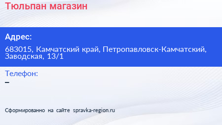 Тюльпан, магазин по адресу 683015, Камчатский край, Петропавловск-Камчатский, Заводская, 13/1 в дальнейшем Организация, размещена в следующих категориях: