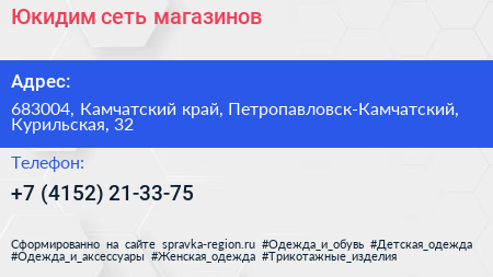 Юкидим, сеть магазинов по адресу 683004, Камчатский край, Петропавловск-Камчатский, Курильская, 32 в дальнейшем Организация, размещена в следующих категориях: