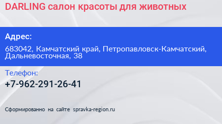 DARLING, салон красоты для животных по адресу 683042, Камчатский край, Петропавловск-Камчатский, Дальневосточная, 38 в дальнейшем Организация, размещена в следующих категориях: