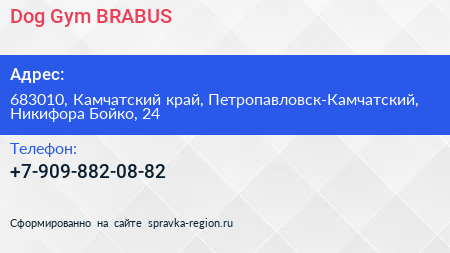 Dog Gym BRABUS по адресу 683010, Камчатский край, Петропавловск-Камчатский, Никифора Бойко, 24 в дальнейшем Организация, размещена в следующих категориях: