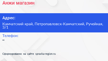 Анжи, магазин по адресу Камчатский край, Петропавловск-Камчатский, Ручейная, 3/1 в дальнейшем Организация, размещена в следующих категориях: