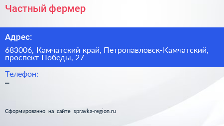Частный фермер по адресу 683006, Камчатский край, Петропавловск-Камчатский, проспект Победы, 27 в дальнейшем Организация, размещена в следующих категориях: