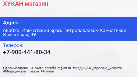 ХУКАН, магазин по адресу 683023, Камчатский край, Петропавловск-Камчатский, Кавказская, 49 в дальнейшем Организация, размещена в следующих категориях: