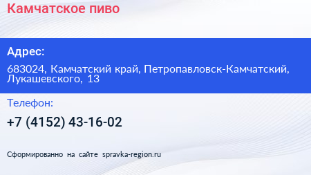 Камчатское пиво по адресу 683024, Камчатский край, Петропавловск-Камчатский, Лукашевского, 13 в дальнейшем Организация, размещена в следующих категориях: