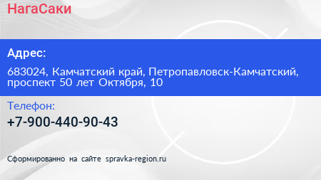 НагаСаки по адресу 683024, Камчатский край, Петропавловск-Камчатский, проспект 50 лет Октября, 10 в дальнейшем Организация, размещена в следующих категориях: