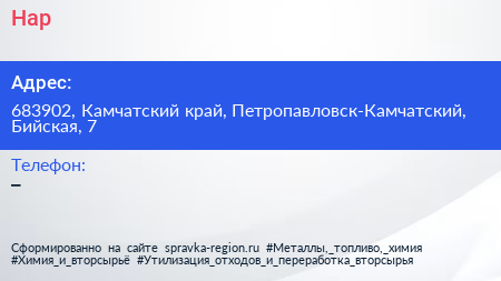 Нар по адресу 683902, Камчатский край, Петропавловск-Камчатский, Бийская, 7 в дальнейшем Организация, размещена в следующих категориях: