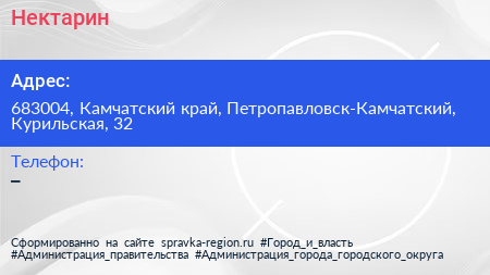 Нектарин по адресу 683004, Камчатский край, Петропавловск-Камчатский, Курильская, 32 в дальнейшем Организация, размещена в следующих категориях: