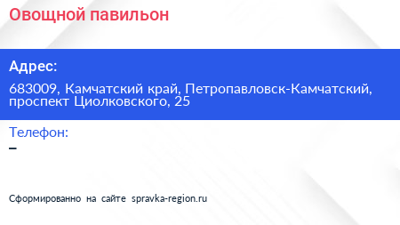 Овощной павильон по адресу 683009, Камчатский край, Петропавловск-Камчатский, проспект Циолковского, 25 в дальнейшем Организация, размещена в следующих категориях: