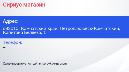 Сириус, магазин по адресу 683010, Камчатский край, Петропавловск-Камчатский, Капитана Беляева, 1 в дальнейшем Организация, размещена в следующих категориях: