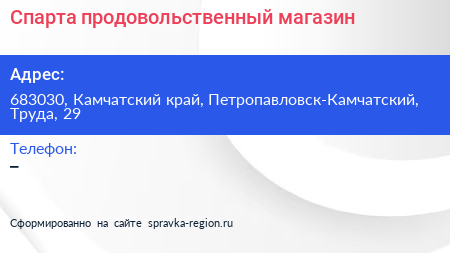Спарта, продовольственный магазин по адресу 683030, Камчатский край, Петропавловск-Камчатский, Труда, 29 в дальнейшем Организация, размещена в следующих категориях: