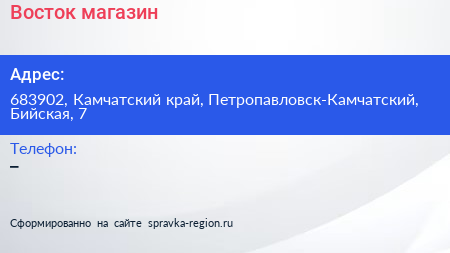 Восток, магазин по адресу 683902, Камчатский край, Петропавловск-Камчатский, Бийская, 7 в дальнейшем Организация, размещена в следующих категориях:
