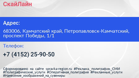 СкайЛайн по адресу 683006, Камчатский край, Петропавловск-Камчатский, проспект Победы, 1/1 в дальнейшем Организация, размещена в следующих категориях: