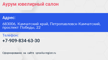 Аурум, ювелирный салон по адресу 683006, Камчатский край, Петропавловск-Камчатский, проспект Победы, 22 в дальнейшем Организация, размещена в следующих категориях: