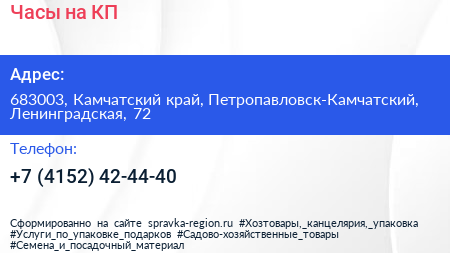 Часы на КП по адресу 683003, Камчатский край, Петропавловск-Камчатский, Ленинградская, 72 в дальнейшем Организация, размещена в следующих категориях: