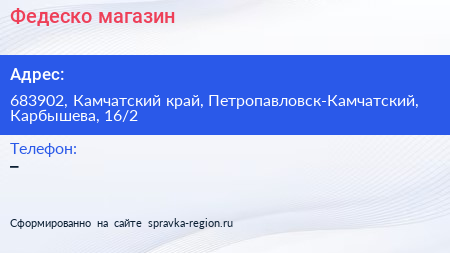 Федеско, магазин по адресу 683902, Камчатский край, Петропавловск-Камчатский, Карбышева, 16/2 в дальнейшем Организация, размещена в следующих категориях: