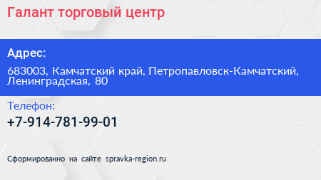 Галант, торговый центр по адресу 683003, Камчатский край, Петропавловск-Камчатский, Ленинградская, 80 в дальнейшем Организация, размещена в следующих категориях: