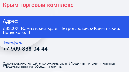 Крым, торговый комплекс по адресу 683002, Камчатский край, Петропавловск-Камчатский, Вольского, 8 в дальнейшем Организация, размещена в следующих категориях: