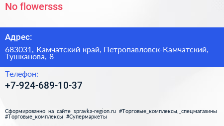 No flowersss по адресу 683031, Камчатский край, Петропавловск-Камчатский, Тушканова, 8 в дальнейшем Организация, размещена в следующих категориях: