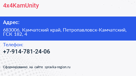 4x4KamUnity по адресу 683006, Камчатский край, Петропавловск-Камчатский, ГСК 182, 4 в дальнейшем Организация, размещена в следующих категориях: