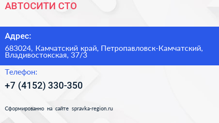 АВТОСИТИ, СТО по адресу 683024, Камчатский край, Петропавловск-Камчатский, Владивостокская, 37/3 в дальнейшем Организация, размещена в следующих категориях: