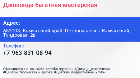 Джоконда, багетная мастерская по адресу 683003, Камчатский край, Петропавловск-Камчатский, Тундровая, 2в в дальнейшем Организация, размещена в следующих категориях: