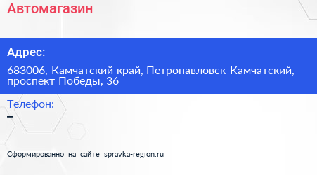 Автомагазин по адресу 683006, Камчатский край, Петропавловск-Камчатский, проспект Победы, 36 в дальнейшем Организация, размещена в следующих категориях: