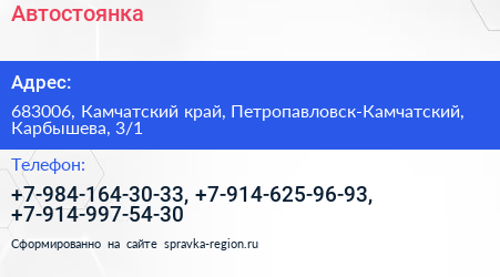 Адрес: Камчатский край, Петропавловск-Камчатский, ГСК 28, 2
