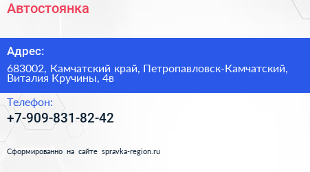 Адрес: Камчатский край, Петропавловск-Камчатский, ГСК 28, 2