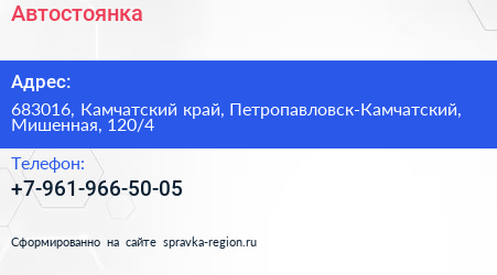 Адрес: Камчатский край, Петропавловск-Камчатский, ГСК 28, 2