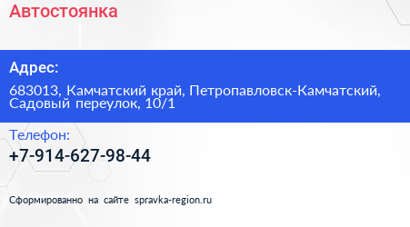 Адрес: Камчатский край, Петропавловск-Камчатский, ГСК 28, 2