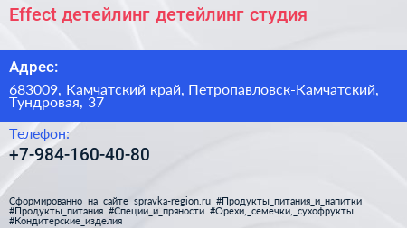 Effect /// детейлинг, детейлинг-студия по адресу 683009, Камчатский край, Петропавловск-Камчатский, Тундровая, 37 в дальнейшем Организация, размещена в следующих категориях: