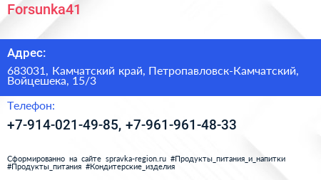 Forsunka41 по адресу 683031, Камчатский край, Петропавловск-Камчатский, Войцешека, 15/3 в дальнейшем Организация, размещена в следующих категориях: