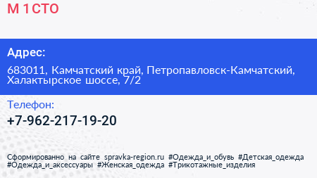 М-1, СТО по адресу 683011, Камчатский край, Петропавловск-Камчатский, Халактырское шоссе, 7/2 в дальнейшем Организация, размещена в следующих категориях:
