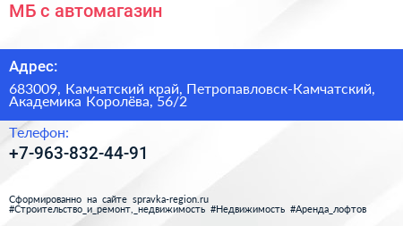 МБ+с, автомагазин по адресу 683009, Камчатский край, Петропавловск-Камчатский, Академика Королёва, 56/2 в дальнейшем Организация, размещена в следующих категориях: