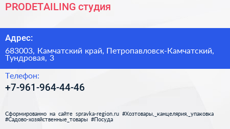 PRODETAILING, студия по адресу 683003, Камчатский край, Петропавловск-Камчатский, Тундровая, 3 в дальнейшем Организация, размещена в следующих категориях: