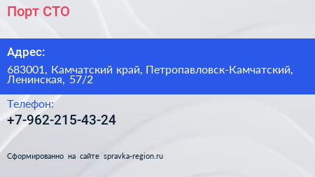 Порт, СТО по адресу 683001, Камчатский край, Петропавловск-Камчатский, Ленинская, 57/2 в дальнейшем Организация, размещена в следующих категориях: