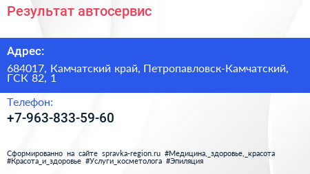 Результат, автосервис по адресу 684017, Камчатский край, Петропавловск-Камчатский, ГСК 82, 1 в дальнейшем Организация, размещена в следующих категориях: