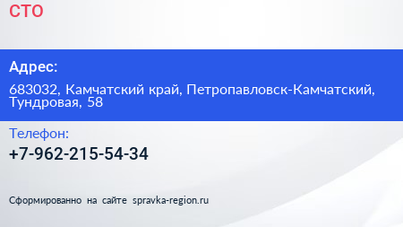 СТО по адресу 683032, Камчатский край, Петропавловск-Камчатский, Тундровая, 58 в дальнейшем Организация, размещена в следующих категориях: