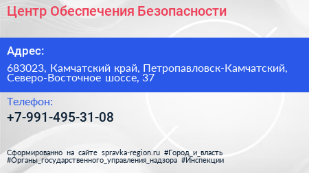 Центр Обеспечения Безопасности по адресу 683023, Камчатский край, Петропавловск-Камчатский, Северо-Восточное шоссе, 37 в дальнейшем Организация, размещена в следующих категориях: