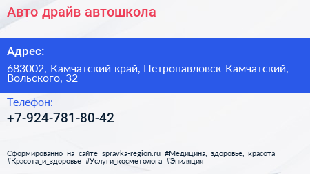 Авто-драйв, автошкола по адресу 683002, Камчатский край, Петропавловск-Камчатский, Вольского, 32 в дальнейшем Организация, размещена в следующих категориях: